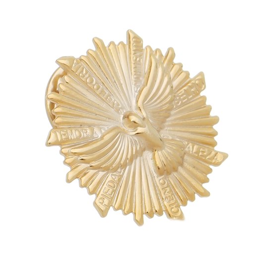 Boton folheado com imagem do Espírito Santo e os sete dons.