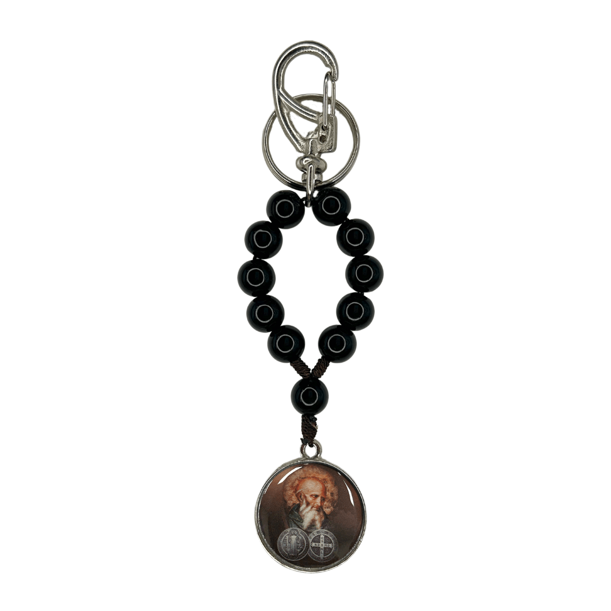 Garanta agora este chaveiro dezena de São Bento com mosquete e contas pretas da MPS Store!