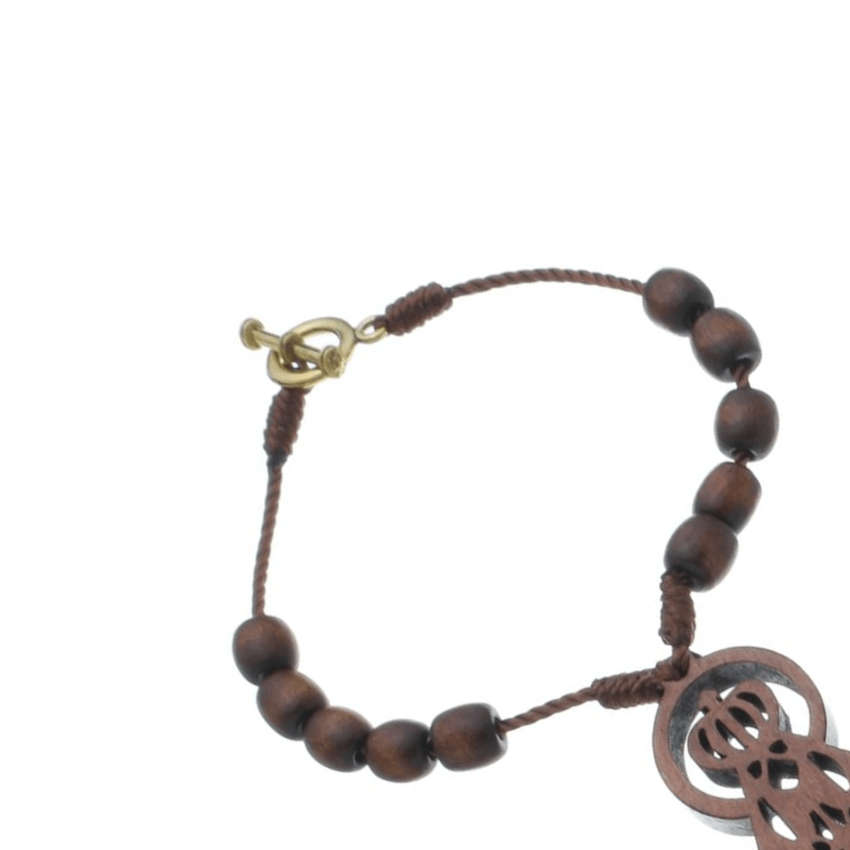 Para aumentar a coleção automotiva, a MPS Store traz esta belíssima dezena de carro em madeira! A peça inteiramente na cor marrom contém barbante marrom escuro, contas de madeira, medalha com a figura vazada de Nossa Senhora Aparecida e crucifixo com as pontas vazadas e Jesus Crucificado em metal na cor dourada. Para que a dezena seja adicionada no local desejado, há um fecho t em metal dourado.