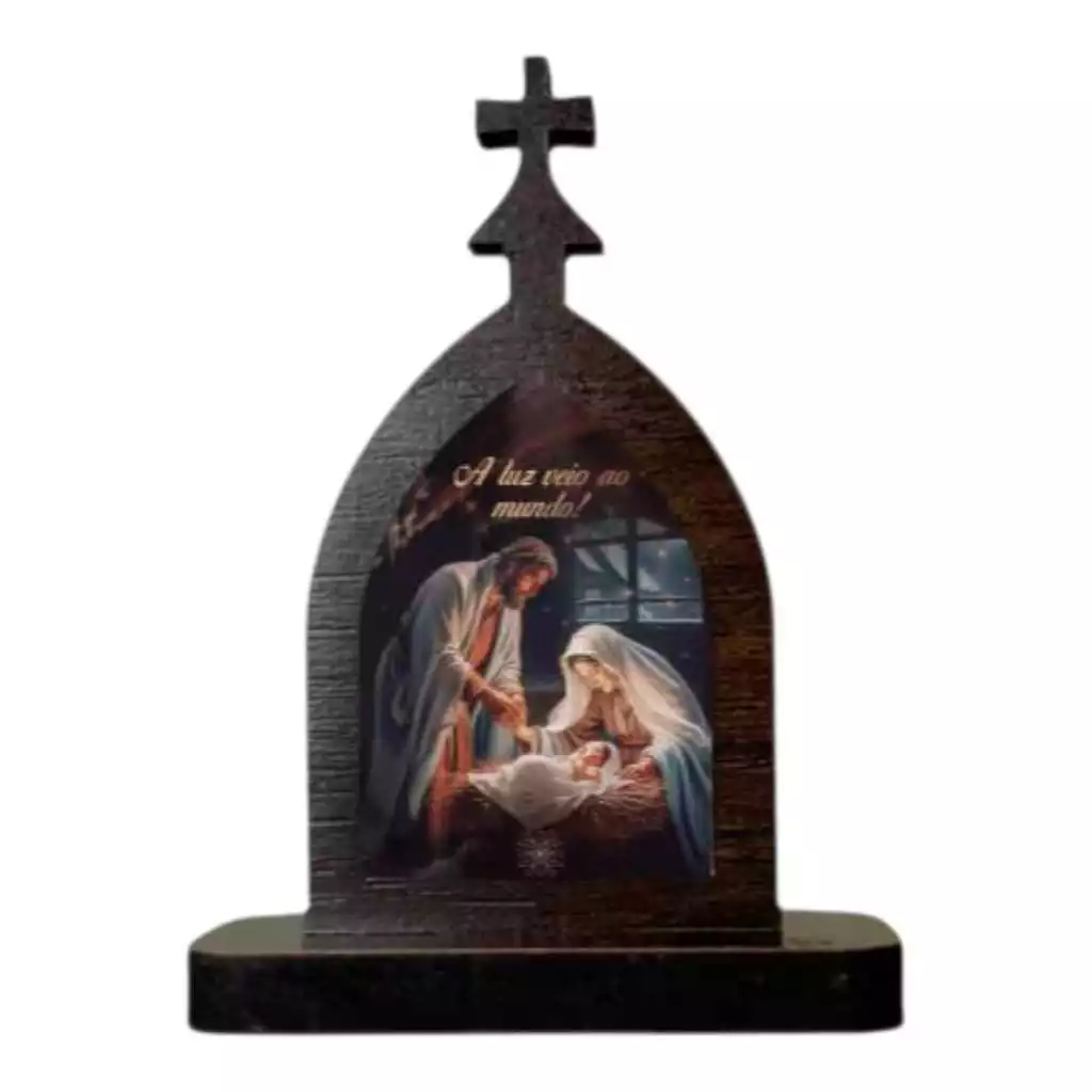 Celebre o Natal com fé, tradição e devoção com esta Mini Capela da Sagrada Família em MDF marrom escuro. Uma peça delicada e charmosa, perfeita para trazer o espírito natalino para sua casa ou igreja, e tornar a data ainda mais especial.