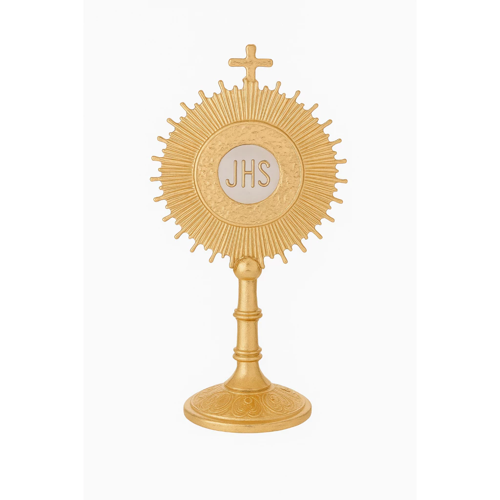 O Ostensório Dourado é uma peça sagrada que une tradição, fé e sofisticação. Produzido em metal de alta qualidade com acabamento metalizado na cor dourada, ele é ideal para capelas, altares domésticos ou espaços de oração, transmitindo a presença do sagrado com elegância e reverência.