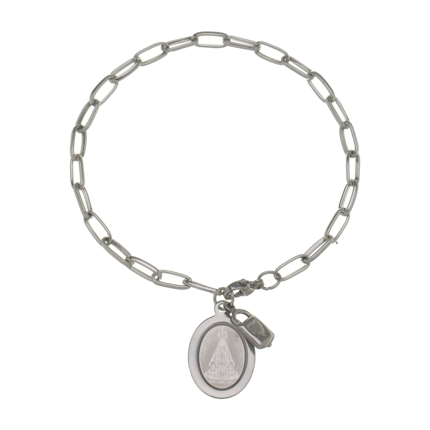 Apresentamos o mais recente lançamento da MPS Store: a elegante cadeia da consagração em inox com a imagem de Nossa Senhora da Conceição Aparecida gravada a laser. Esta peça exclusiva inclui um cadeado e um fecho prata para ajuste ao pulso com facilidade.