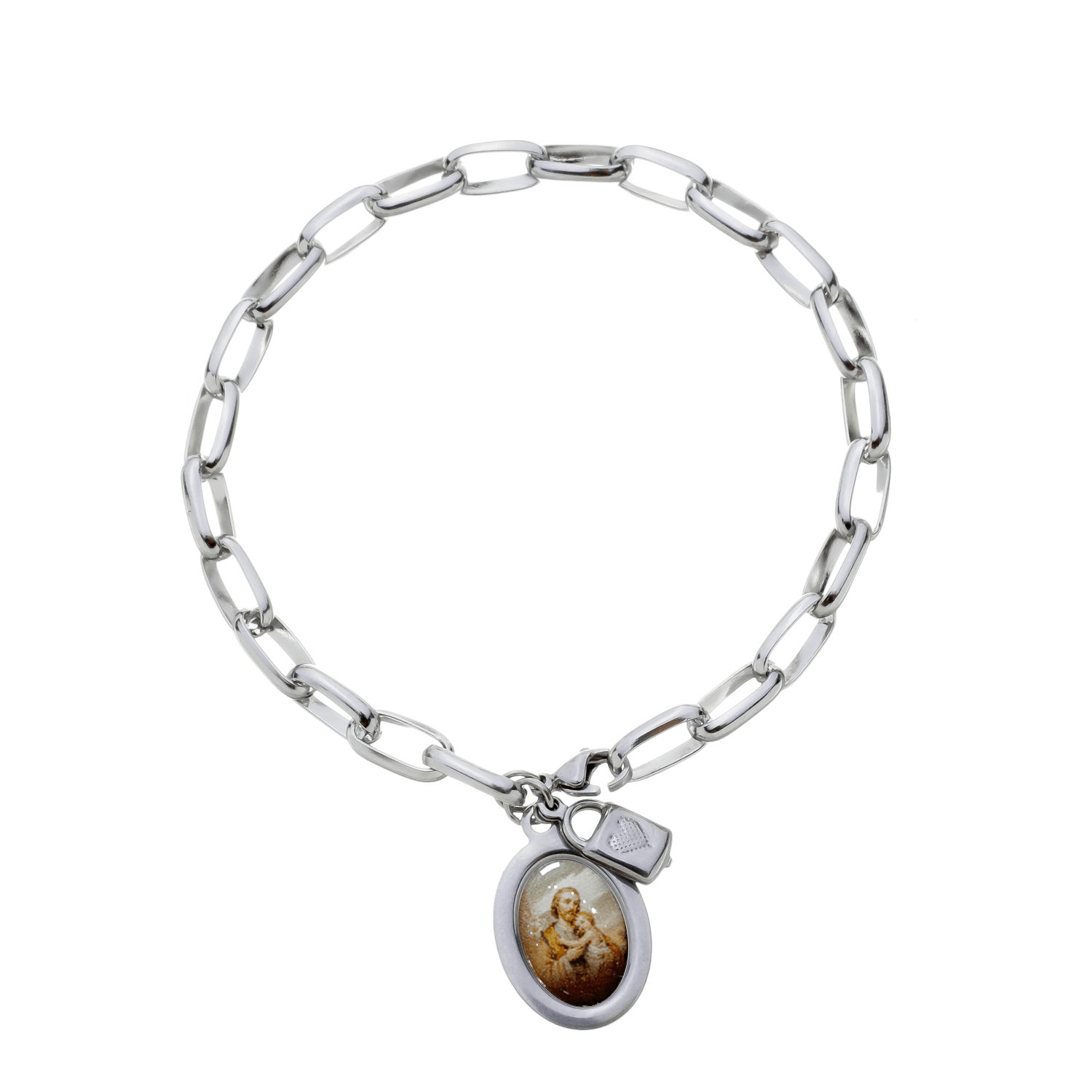 A cadeia de consagração de São José é uma novidade imperdível! Em inox, a peça católica possui uma corrente grossa. Também há uma medalha oval com a imagem resinada do pai terreno de Jesus e um cadeado. E para que seja possível ajustá-la ao pulso, há um fecho.