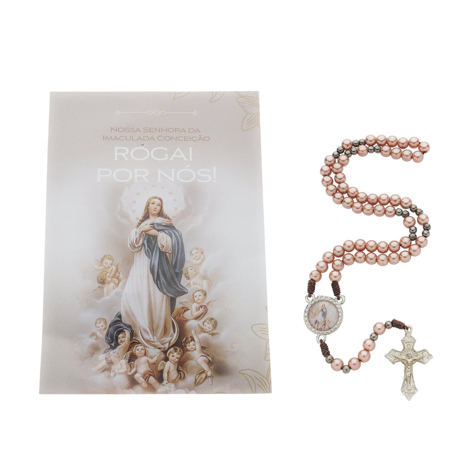 Kit Terço Devocional Imaculada Conceição com Folheto