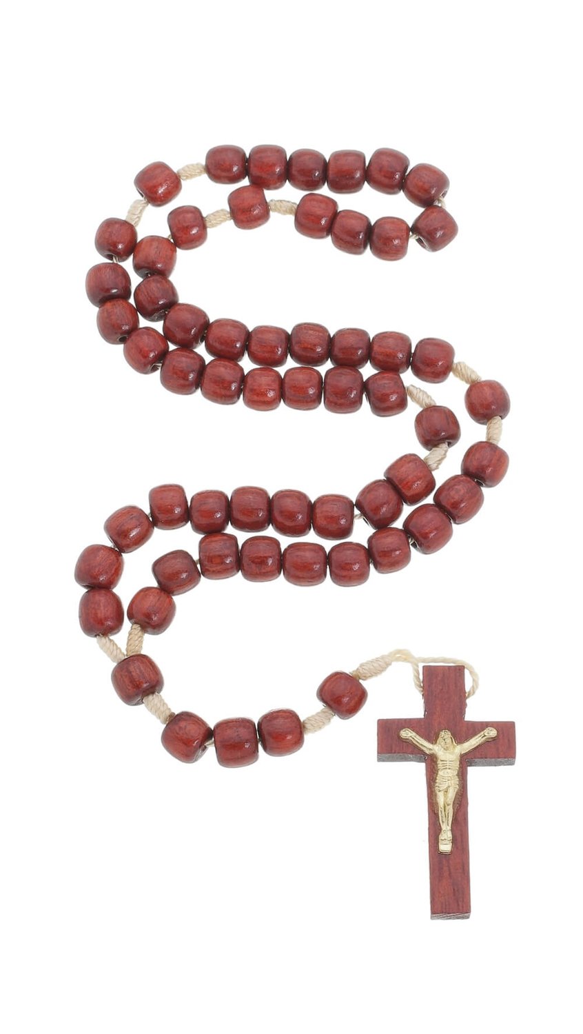 Terço de Jesus Misericordioso em Madeira Pau Brasil - 8mm