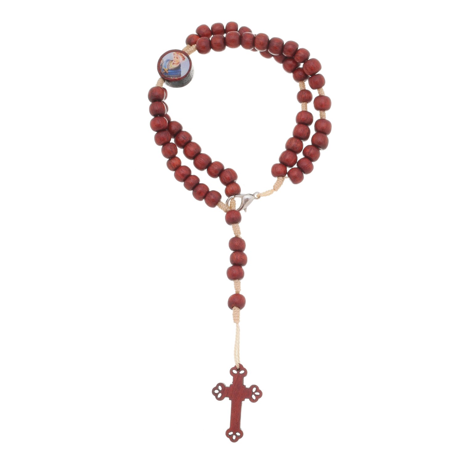 Terço de Pulso Nossa Senhora da Salette em Madeira Pau Brasil