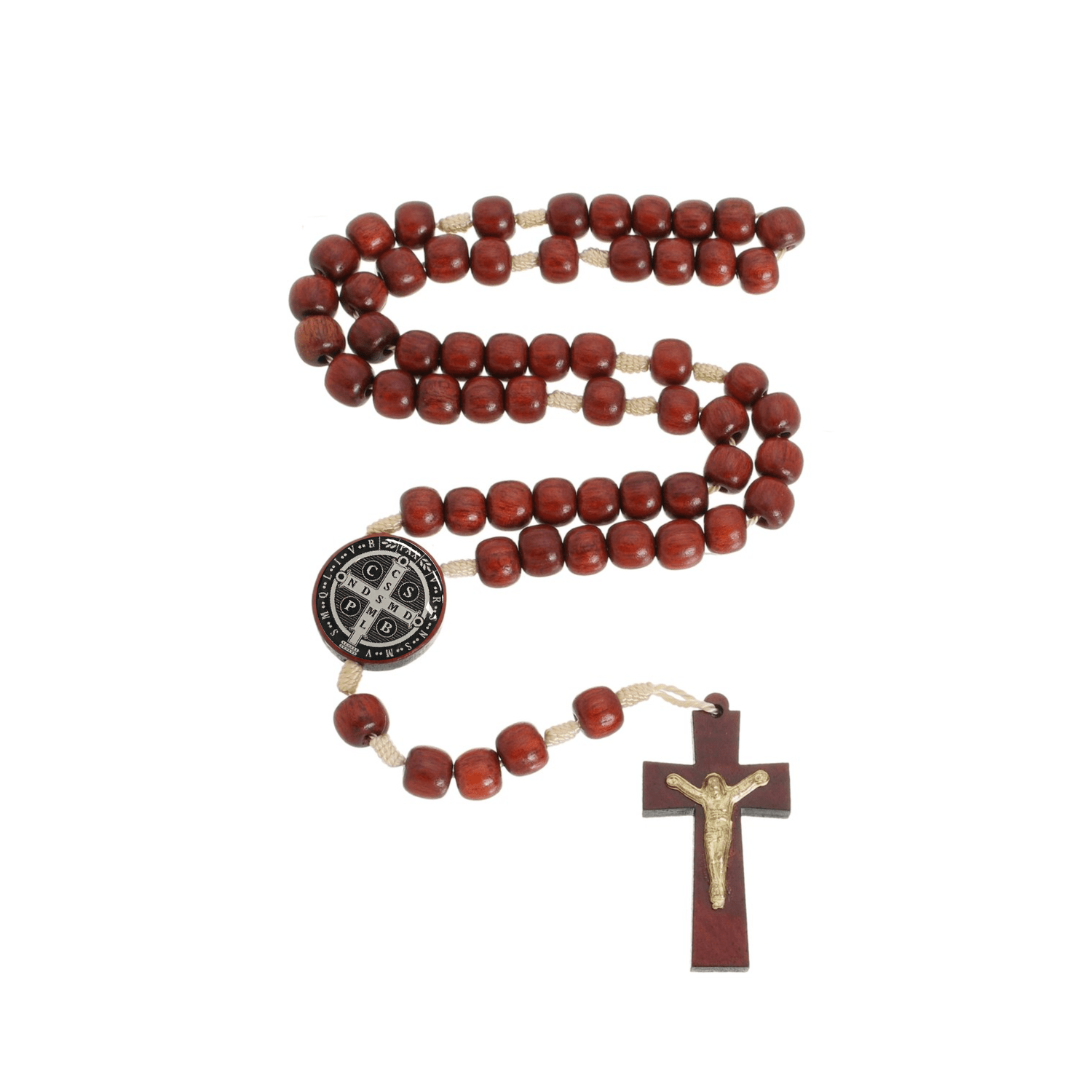Esse belo terço possui contas e entremeio de madeira Pau Brasil. A medalha de São Bento é feita em resina colorida e o crucifixo de madeira tem o Cristo Crucificado na cor dourada. Prático para o uso no dia a dia, esse terço de madeira é perfeito para expressar sua fé e confiança em São Bento!