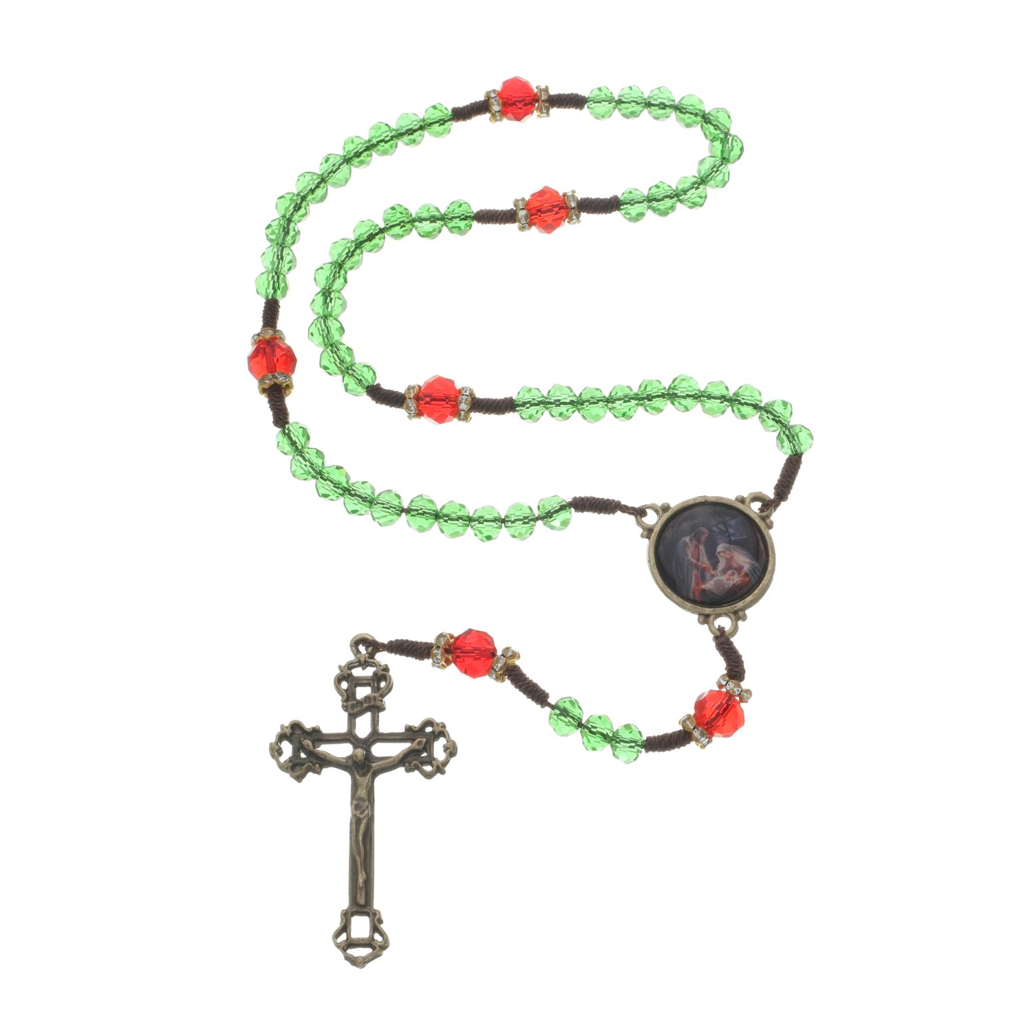 Terço Natalino da Sagrada Família com Conta Cristal Verde