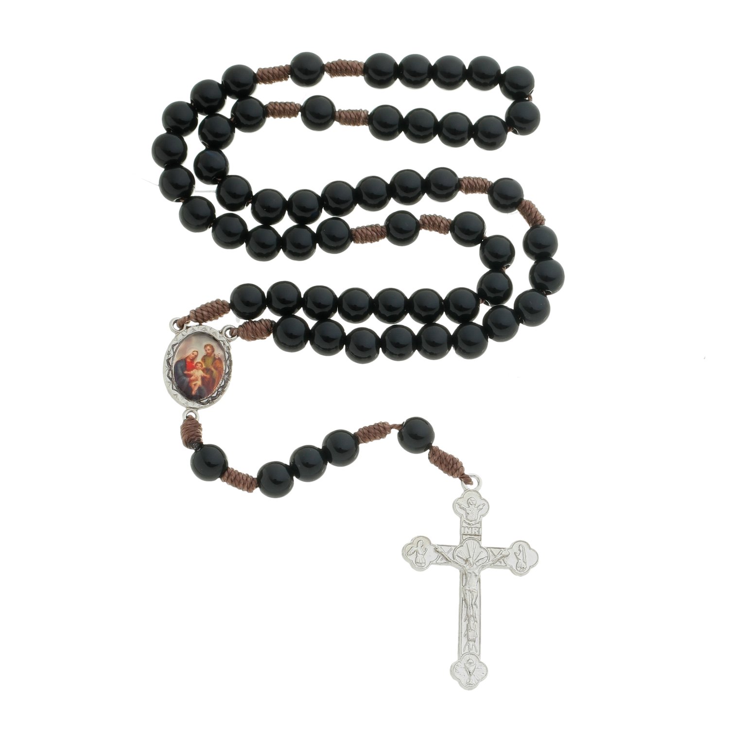 Esse terço da Sagrada Família com contas em pérola preta leitosa é mais um dos belos produtos católicos da Sagravia. Os entremeios são medalhas em metal com imagem da Família de Nazaré, confeccionada em resina de alto padrão. O crucifixo também é de metal prata, com o Cristo Crucificado ornado em alto relevo. O terço da Sagrada Família é um item religioso de muito bom gosto, produzido com materiais de excelente qualidade, garantindo maior durabilidade e resistência a peça. É perfeito para os momentos de oração em família! Peça já o seu e conte com o auxílio da Família de Nazaré para conduzir a sua família nos caminhos de Deus!